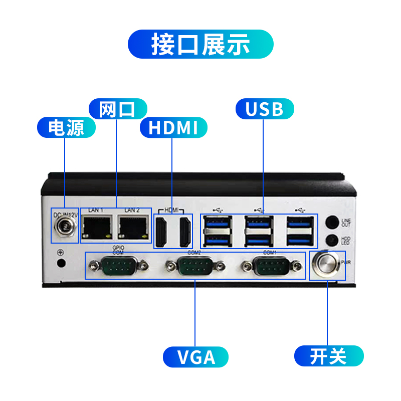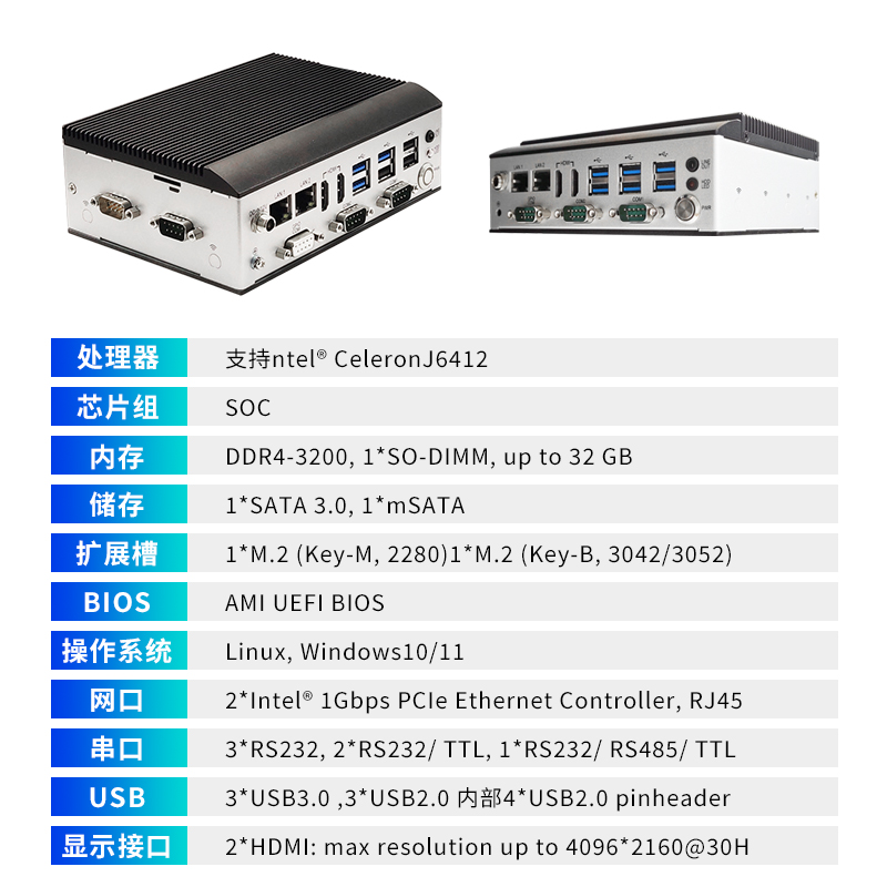 赛扬四核处理器,支持5G,小尺寸BOX,DDR4 32G内存,铝壳无风扇,8*GPIO,壁挂式工控机